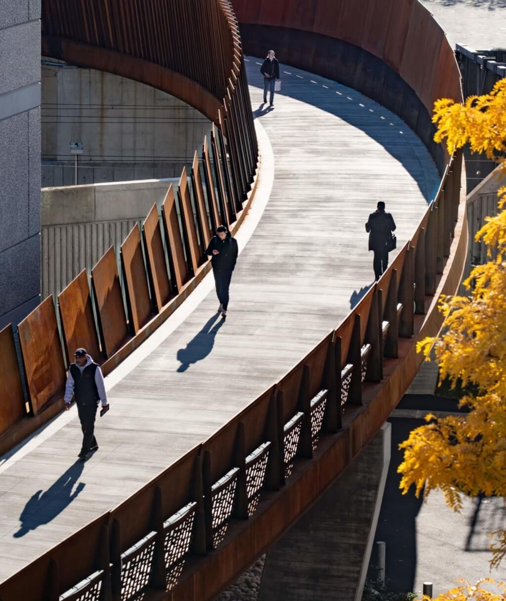 PedX is an elevated bridge that connects Northeastern University’s main campus to its new science and engineering precinct. The new precinct is comprised of the recently completed Interdisciplinary and Engineering Complex (ISEC) building and EXP, a future home for a number of the University’s research labs, robotics programs and a makerspace. The project spans the MBTA and Amtrak rail lines, realizing Northeastern’s goal of linking its Huntington Avenue Campus to Columbus Avenue.