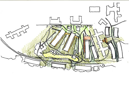 I very much enjoyed exploring the specific needs and design challenges required to provide spinal cord injury patients the spaces and access to facilities to meet their needs. The architecture and landscape strove to provide all patients with unencumbered access to the landscape.