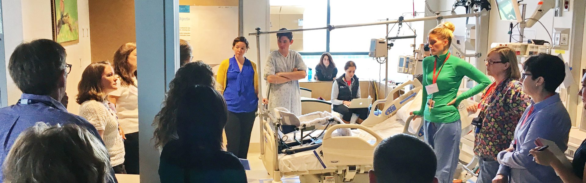 As the group moved around the room, they grabbed the taped 2D equipment prints that were placed on the headwall and moved them to the ‘right home.’ People discussed, “do we really use this equipment anymore?” or “our team always needs this available on the right side of the bed but we need to view it from the corridor.” As architects, our goal is to take all the opinions and observations to shape the design of the space.
