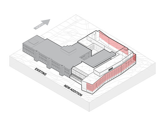 My focus for this study was on the east and north facades of the new addition. The addition to existing buildings, Dana and Old Dana, conceptually wraps around the existing structures to create a tight wrapper.