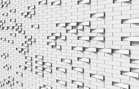Over the course of the study, I pulled apart brick construction by controlling individual bricks, specific rows of brick coursing, angles of rotation, module sizes and spacing. In one scheme, I incorporated an element of random-selection that produced interesting results.