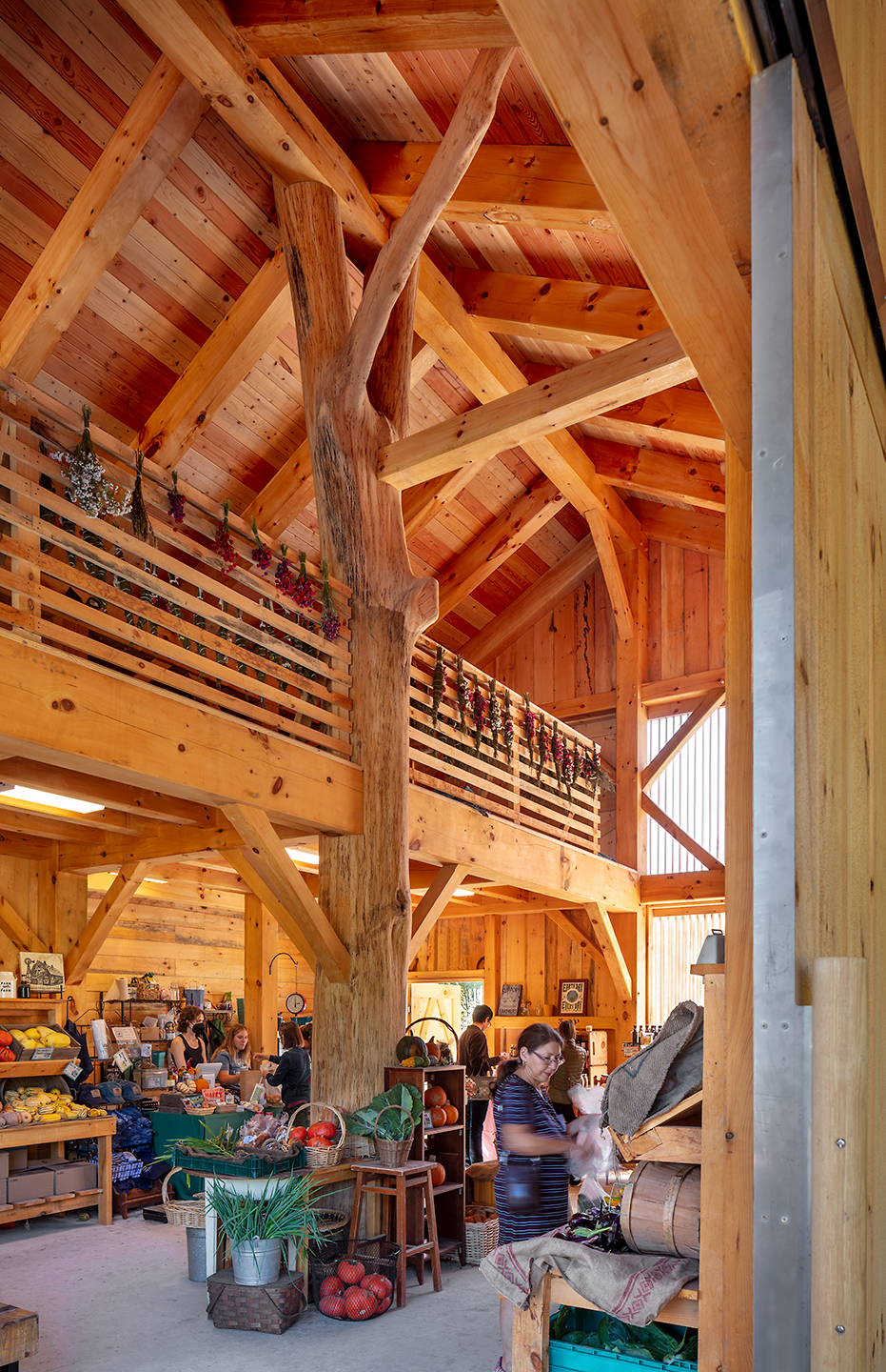 Land’s Sake is a non-profit community farm in Weston, MA that serves their townspeople and hunger relief organizations through fresh produce and environmental education programs. For the past five years, PAYETTE has assisted Land’s Sake in developing and executing a long-term infrastructure project for their 40-acre farm. Last March, the timber frame for the animal barn was raised in 5 days, and when we returned in the fall to take photos, the barn was already in full operation. Mostly constructed of wood donated by a Weston landowner, the barn’s hallmark is the center tree post. The organic silhouette of the tree contrasts with the usual shapes and textures seen in our buildings. It brings an earthiness, grittiness, gentleness that contrasts with straight edges and smooth faces. I knew instantly – I wanted this year’s sketchbook cover to feature the tree.
