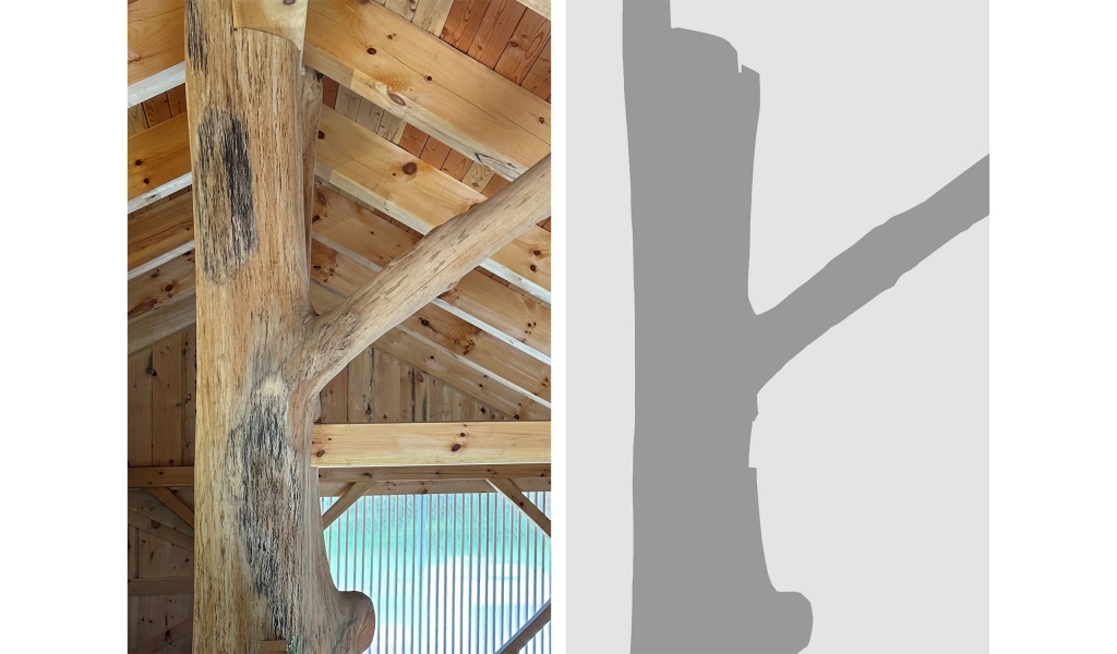 The story of this year’s sketchbook begins with a tree – a tree that once humbly lived in a Weston grove, a tree that now stands tall as the support post and centerpiece within the Land’s Sake Animal Barn.