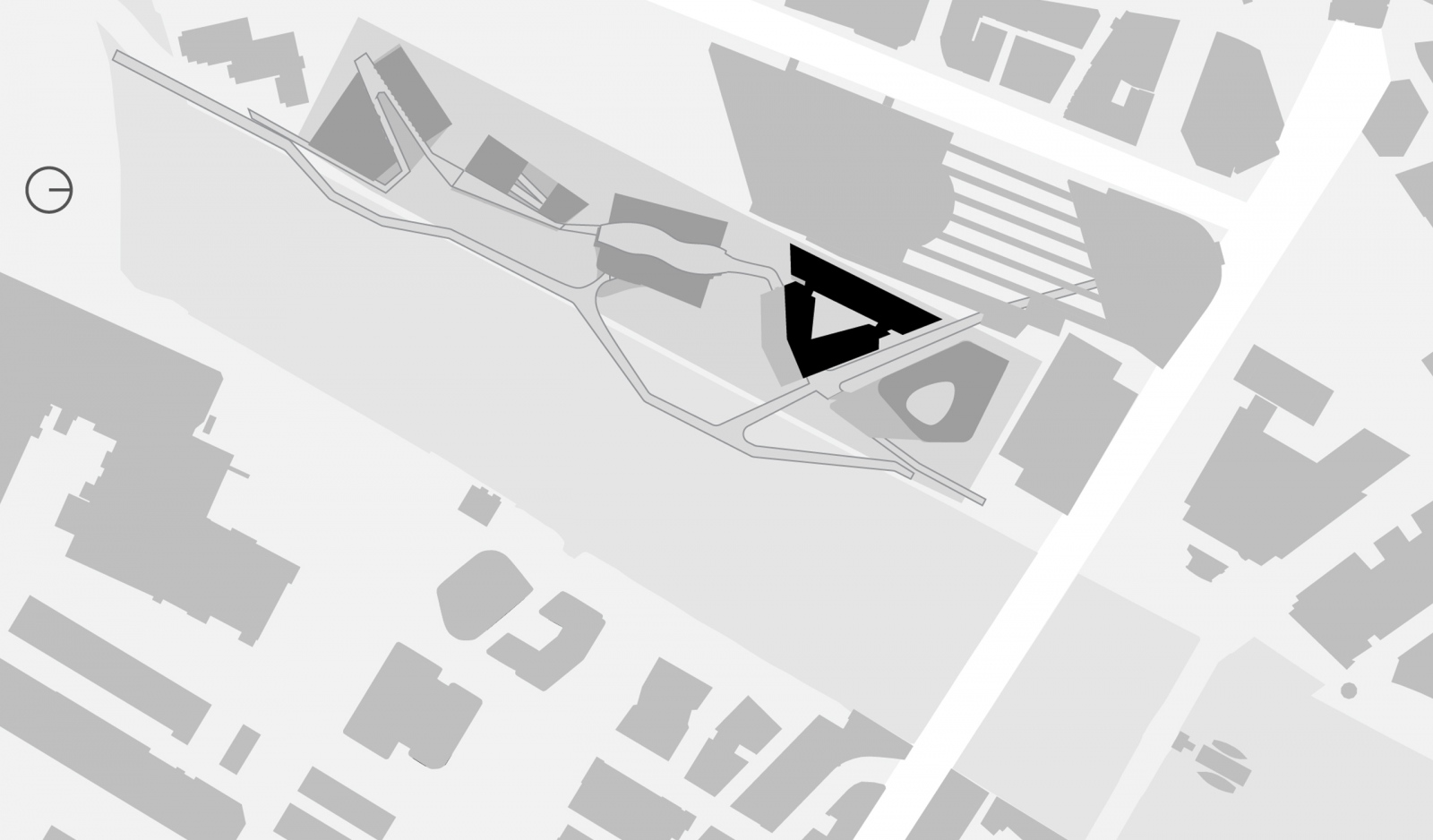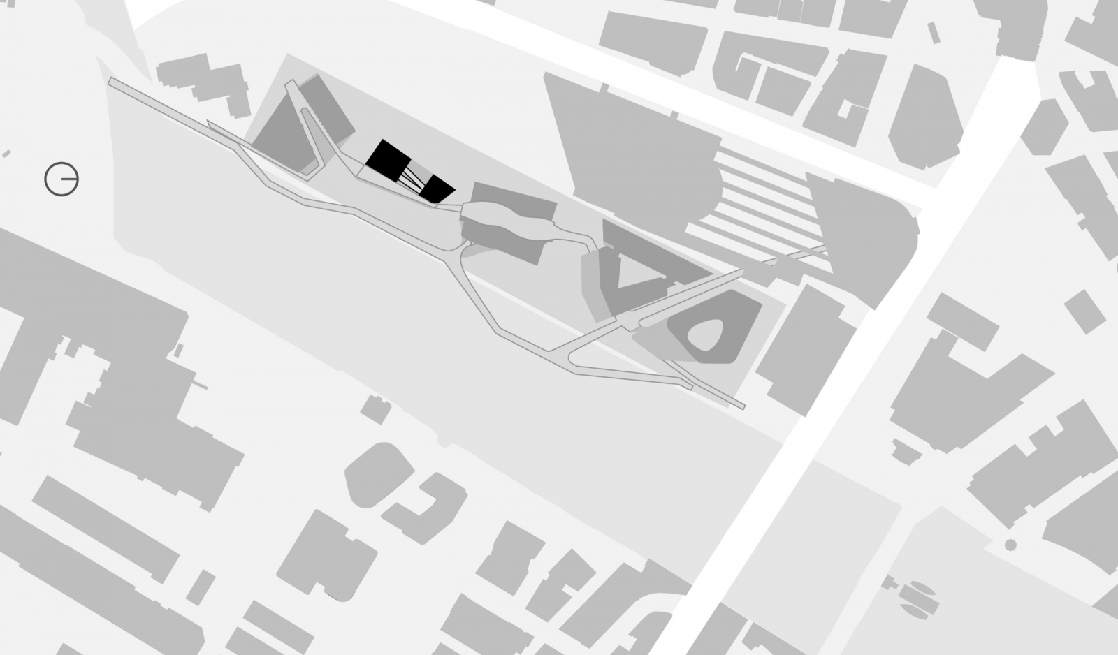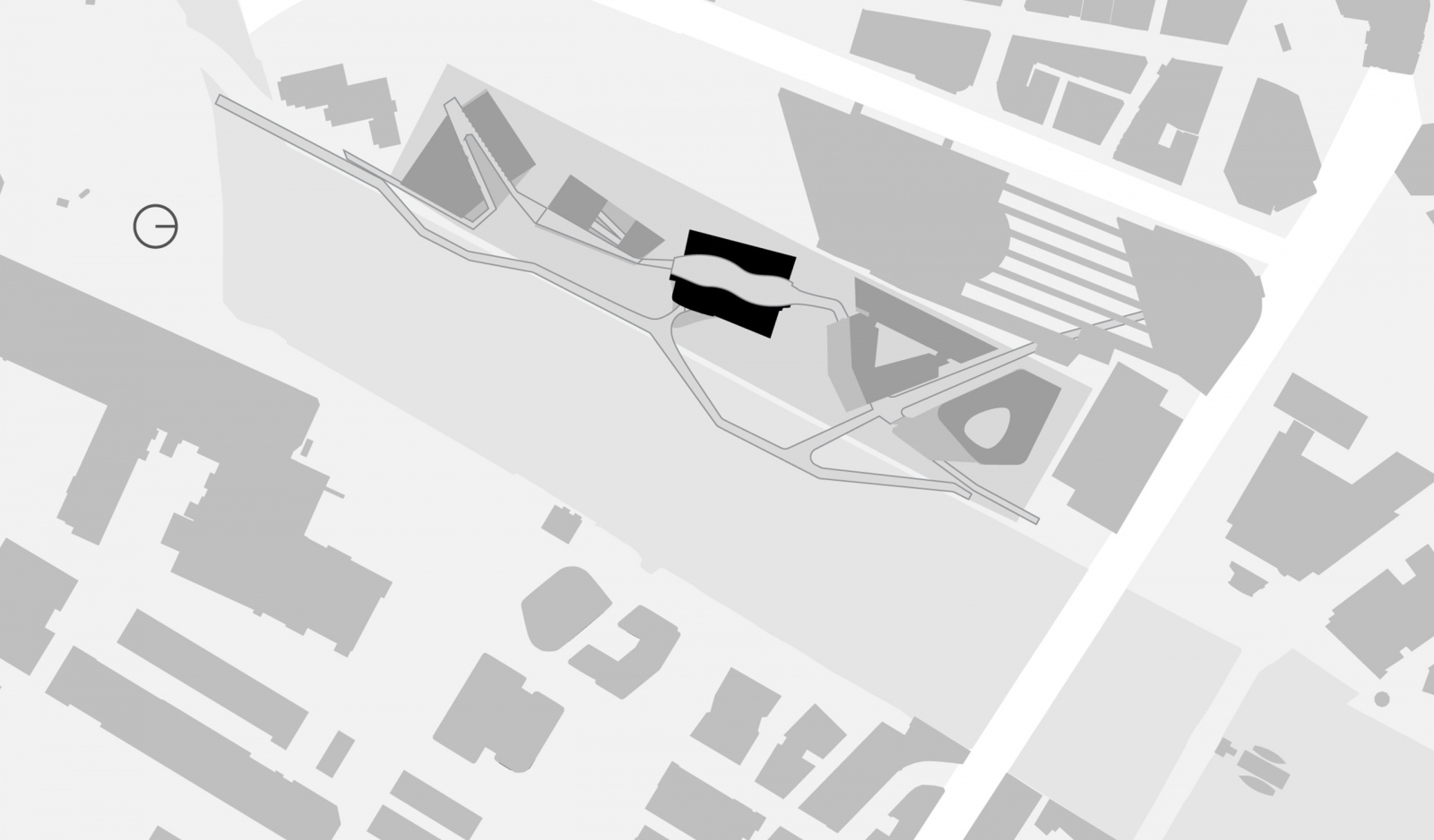 The Pharmaceutical Headquarters stands at the end of the five-building complex, serving as the entrance to the site. Serving community spirit, the private program of Pharma HQ is overlaid with public amenities and opportunities for social interaction. The proposed design values holistic health with wellness strategies incorporating biophilic design, daylight, healthy materials and restful spaces. The plan consists of three elements: a tight and efficient laboratory wing reserved for researchers; a less restricted area containing a restaurant, auditorium and meeting rooms open to the public; and a semi-enclosed atrium fully open to pedestrian explorers.