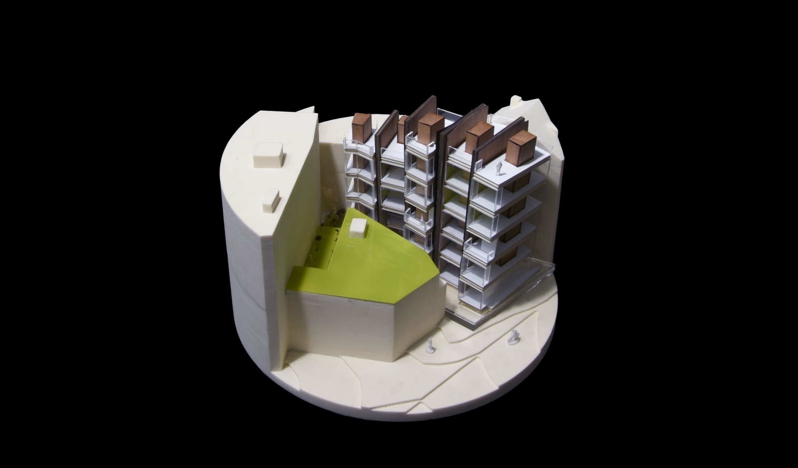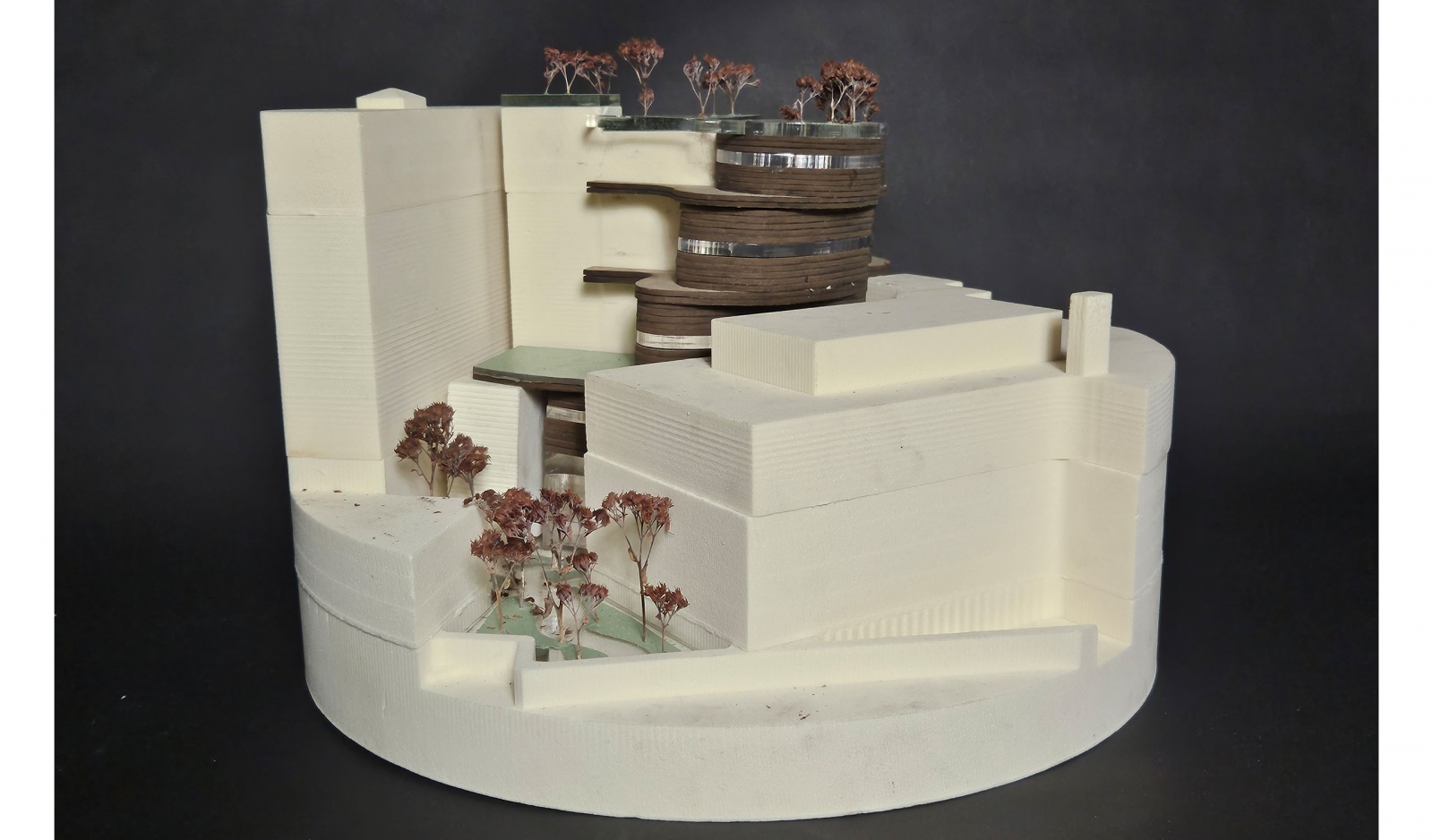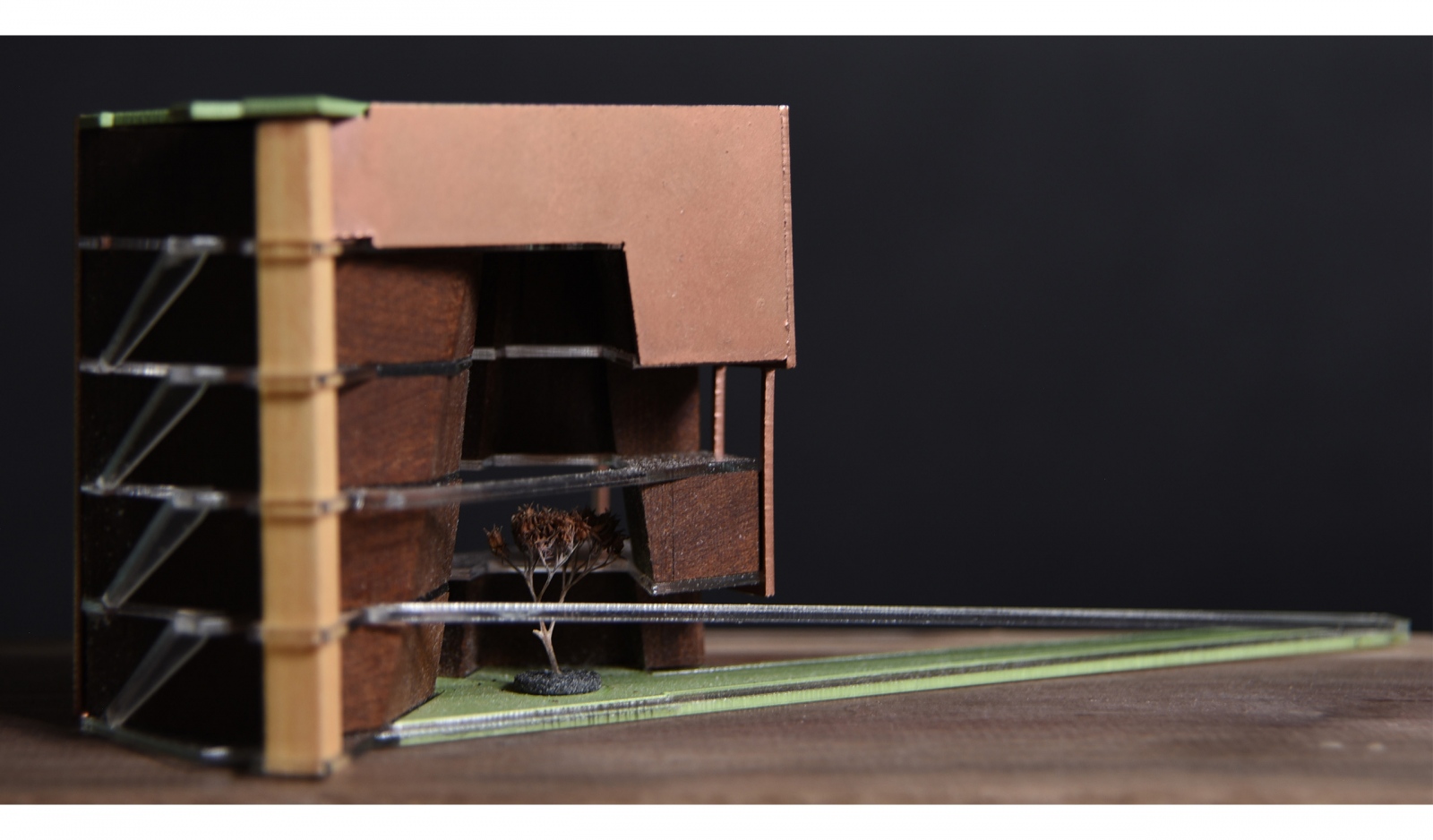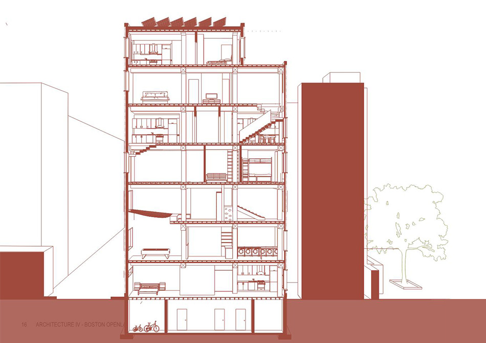Our project services the North End neighborhood of Boston and seeks to preserve the unique urban green space that has naturally grown on the site and invites people to reach this oasis by preserving and improving upon the current transition to encourage people to flow through the site to discover the oasis. The ground floor consists of a gallery space dedicated to the history of the North End, while the upper floors are residential units that take advantage of the site’s advantageous conditions of being an Urban Sliver in the Heart of Boston’s North End.