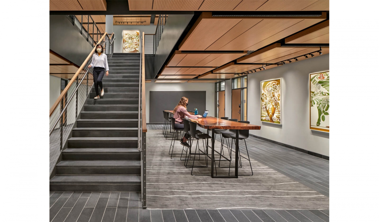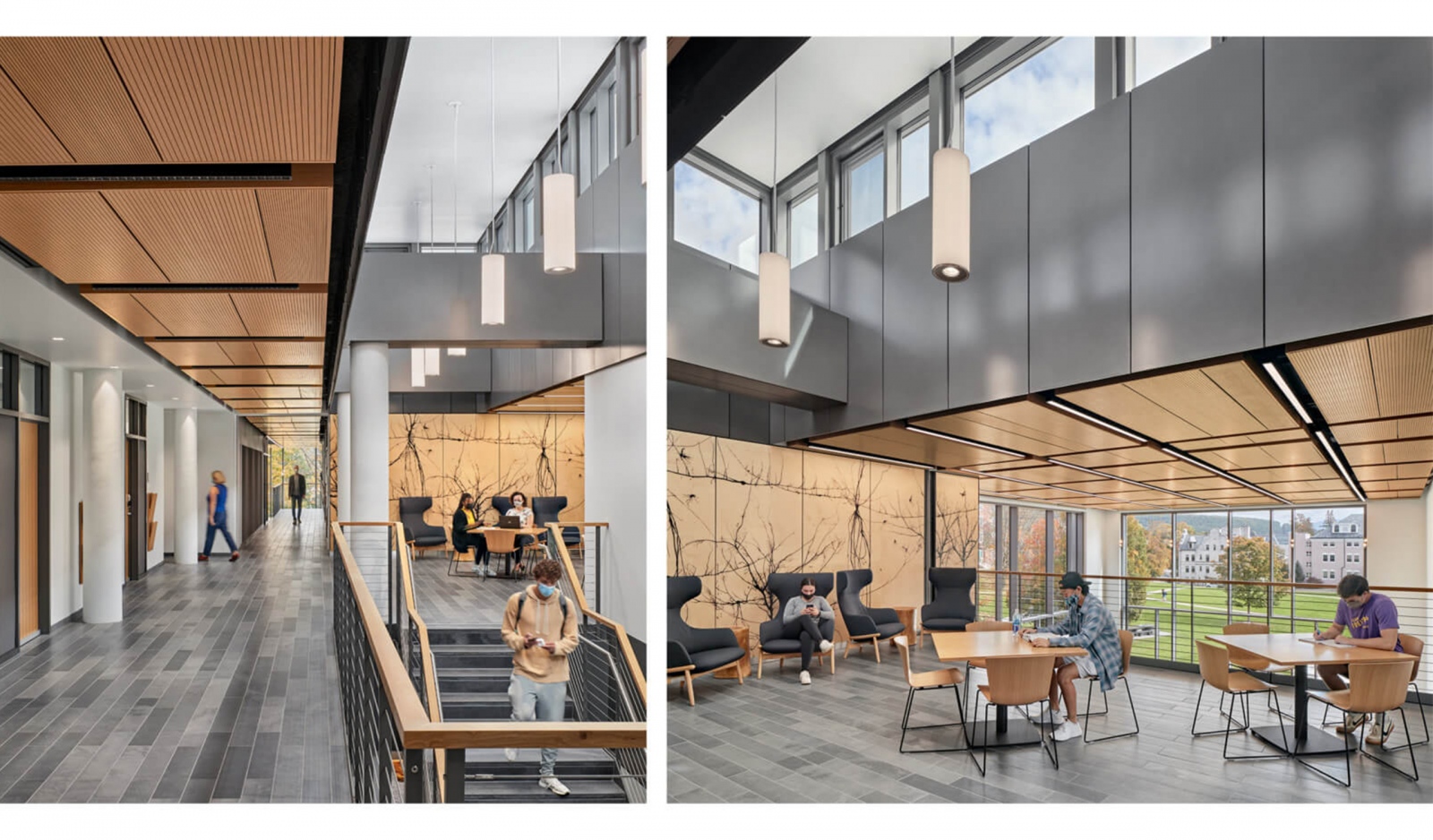 An emphasis was placed on regional materials with local species of wood, Berkshire stone and granite used in the project. The high-performance envelope and well-tuned daylight create a comfortable space connected to the natural environment along with electrochromic glazing on the skylights to minimize glare and heat gain.