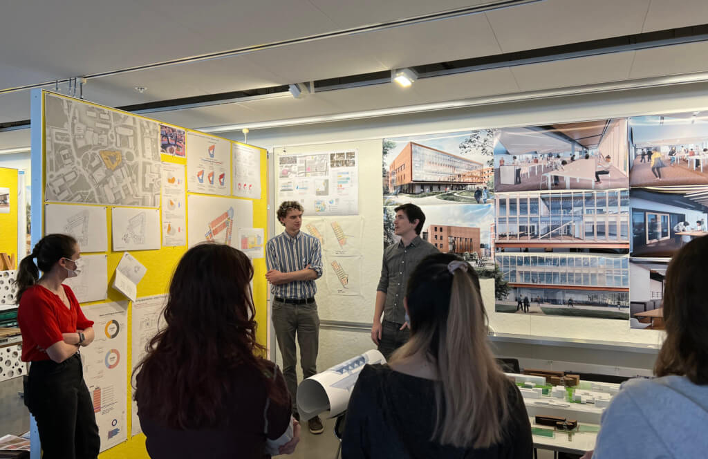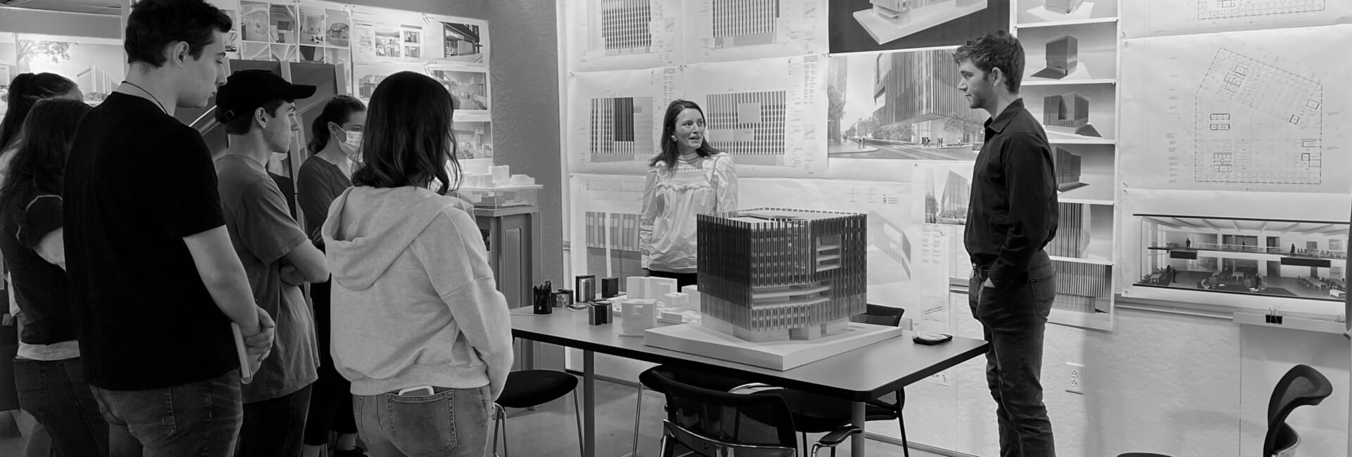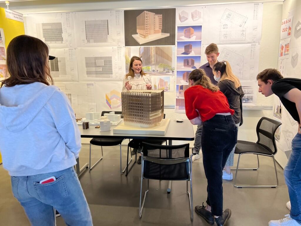 The visit began with a brief introduction to PAYETTE by Bob Schaeffner, followed by a tour of the office by Laurie Booth and Laura Zarwi. The tours stopped at alcoves to see active project work and meet with a handful of teams. The visit ended with a casual conversation with Andrea Love, where students had a chance to ask questions about building performance, active projects and the firm.