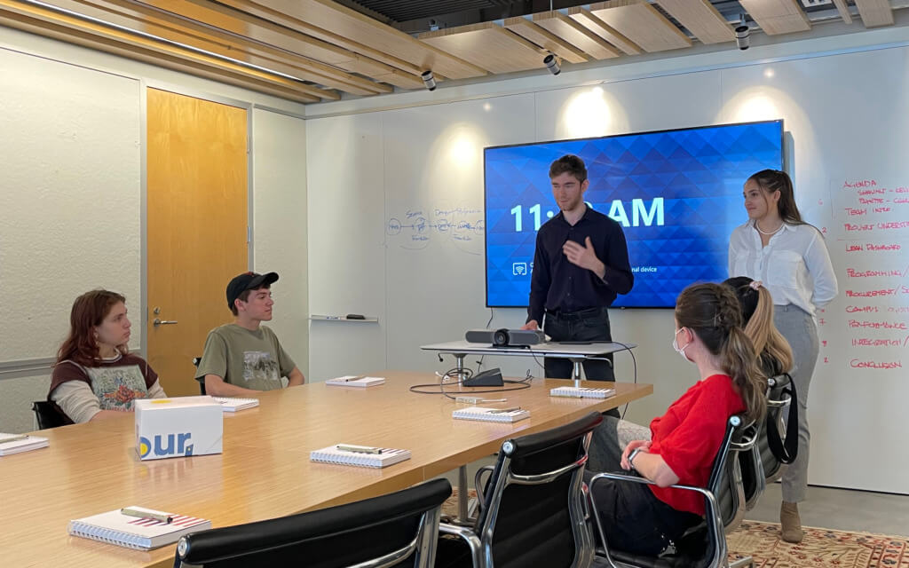 Nik Romano and Sharmeen Khan, both Northeastern Co-ops at PAYETTE helped organize the tour at both Northeastern and PAYETTE – and shared their work at PAYETTE with fellow students.