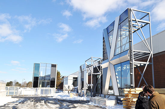 Recently, members of the façade team for Northeastern University’s Interdisciplinary Science and Engineering Complex (ISEC) had the opportunity to visit Permasteelisa’s North America (PNA) headquarters in Windsor, CT, where they’ve been located since 2001. The capacity of the 350,000 SF facility includes six assembly lines that service incoming material and assembled curtain wall units for five projects each month. The facility at Windsor has primarily been fabricating projects in New York City and New Jersey the last few years.