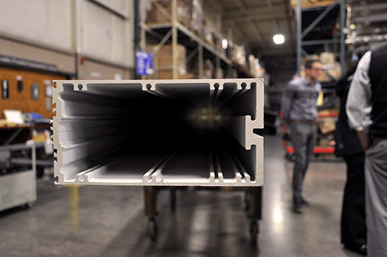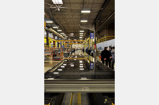 The agenda of the trip continued the on-going design assist process with a tour of the curtain wall manufacturing facility. The PAYETTE team was joined by the members from ARUP and Suffolk Construction and PNA’s project director Allan Warner led the tour. The facility is highly organized and efficient. From the full visual inspection of raw materials, to framing and glazing installation and system sealing, the facility provided a high sense of quality control.