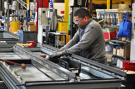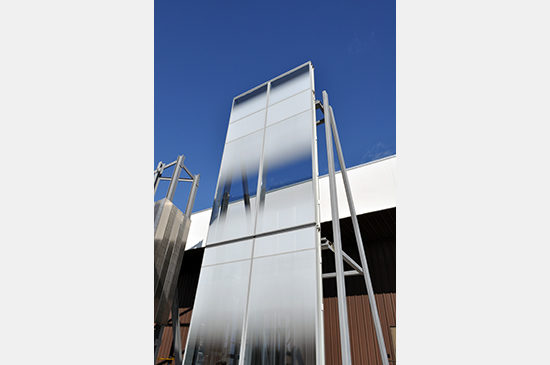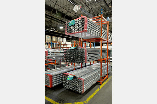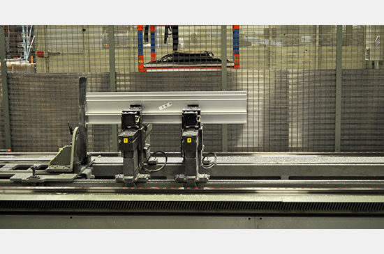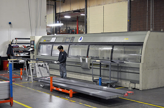 The layout of the facility functioned in a clockwise fashion. With the arrival of raw extrusion material at the loading docks, the stock is visually inspected for deflections and sealed. The appropriate stock is then sent to the “planet” stations. The planet stations use high powered single track CNC routers to cut down, drill and notch the stock. The aluminum debris is collected in barrels to be reused. The cut extrusions are carted to the assembly line at the other side of the warehouse – where framing, glazing installation and sealant/caulking take place. As the materials move through the assembly lines, barcode tags systematically catalog each individual panel unit. At any point along the fabrication process, PNA can retrieve any unit and review its status. When completed, the glazed unit is hoisted into a vertical position where the final cleaning is conducted. The finished product is hoisted and stacked into crates and stored.