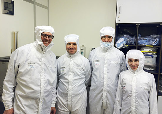 The cleanroom is a space dedicated to research on materials and systems on the scale of tens of nanometers. (As a reference point: a sheet of paper is 100,000 nanometers thick.) Work on that scale could be destroyed by a speck of dust, so everyone entering the clean room must be covered in special fiber-free clean gowns which contain the tens of thousands of skin cells we shed every hour. (Some of us had to wear beard covers, too.)