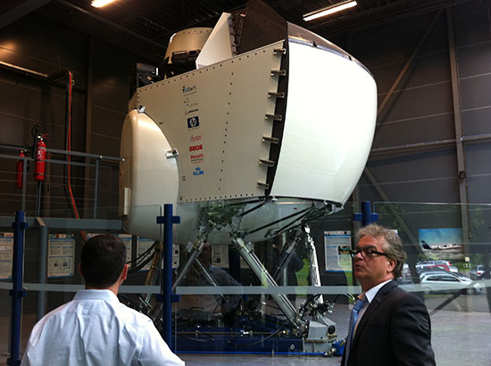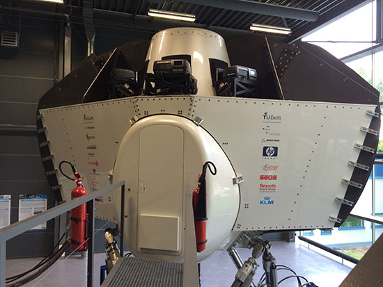 The lab has built their own flight simulator, and due to the light weight and high strength of the materials they develop, the simulator is capable of extremely high accelerations. (Our guide described it as being able to simulate “near-crash conditions.”) Every part of the simulator, from the pistons supporting it to the software running it, was built at the school.