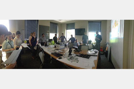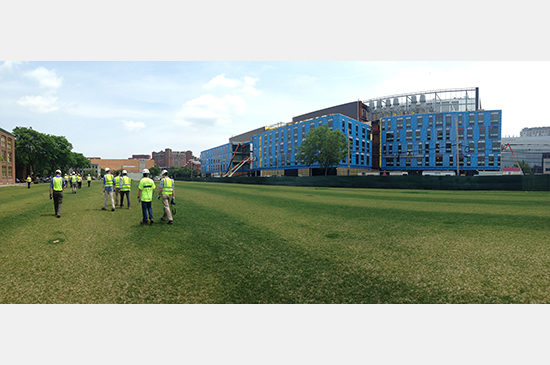 The Young Designer’s Core (YDC) recently held a construction tour of 75-125 Binney Street project, a 400,000 SF office and lab building, comprised of two buildings and a connective all-glass atrium. The tour provided design team the chance to share their collocation experience, which involved working directly with sub-contractors and engineers on site as well as the chance to demonstrate some of the technology the teams used throughout the design-assist process.