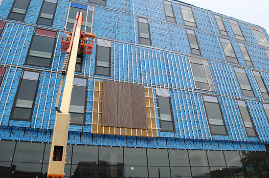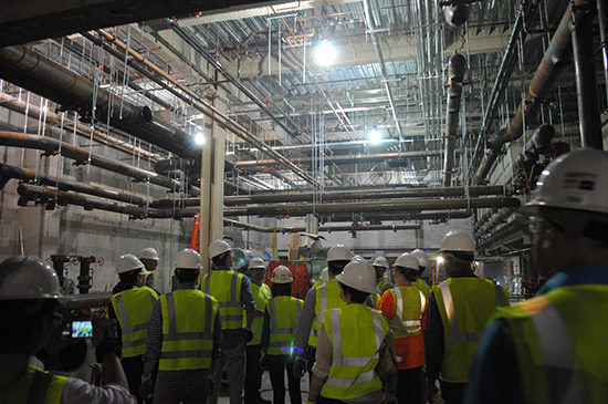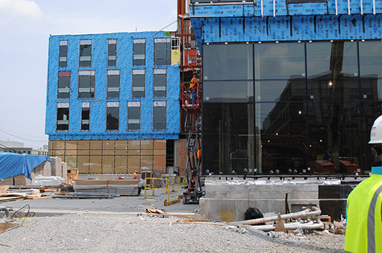 While only a few TAKTL panels that comprise the parametrically designed skin were in place, we were able to view those panels as well as examine the balconies that will allow users to occupy the southern façade. Other tour highlights included the garage, highly-coordinated chiller room and the interior of the project.