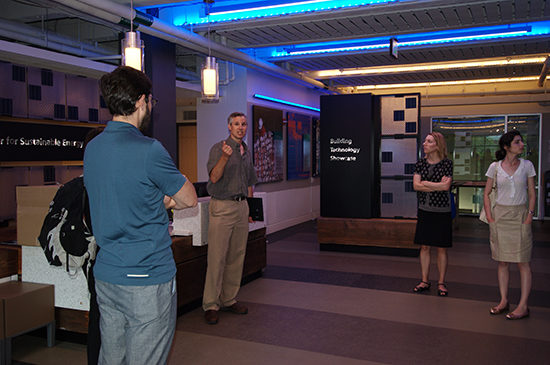 Last month a group from PAYETTE visited the Fraunhofer Center for Sustainable Energy Systems (CSE) in nearby Fort Point. PAYETTE’s Young Designers Core (YDC) organized the tour. We enjoyed a personal tour led by Dr. Kurt Roth, Director of Building Energy Technology. The CSE is a research and development facility that focuses on energy analysis for materials and systems. In addition to housing offices and testing labs, the whole building is considered a “living laboratory” where innovative sustainability solutions are tested real-time.
