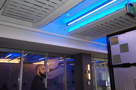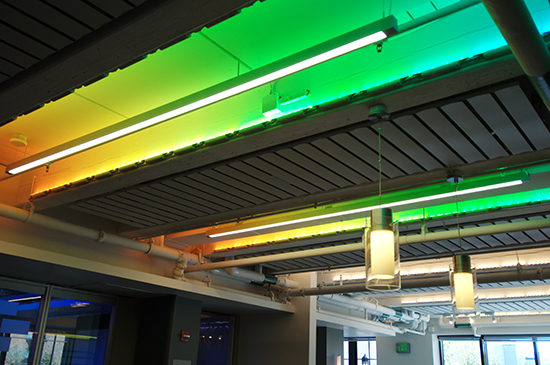 For cooling, the building uses chilled beams radiant chilled panels, displacement ventilation, and operable windows. The building had a primary cooling system for daily use, and for events a supplementary cooling system can be turned on. They also had some groovy colored LED accent lights that could turn the lobby from professional to party with the push of a button!