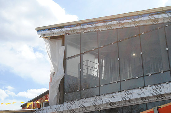 At the time of the tour, structural steel erection was complete and the general contractor, Tocci Building Company, was preparing for the concrete slab-on-grade pour. We observed the installation of angle curtainwall mullions, installed to maintain the thin mullion profile at the corners rather than a boxy profile. It also will accentuate the splayed angles, both in plan and section, in the waiting room.