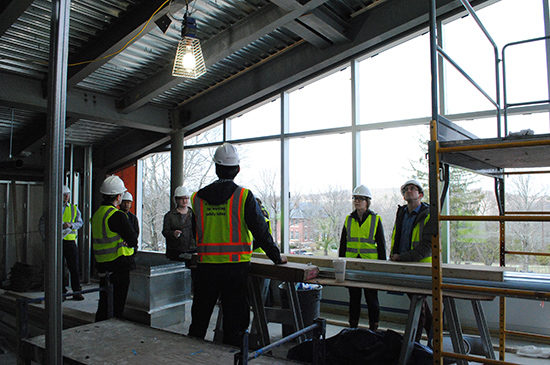 PAYETTE’s Young Designer’s Core (YDC) recently visited the construction site for Tufts University Foster Hospital for Small Animals. The project consists of renovating an existing 18,000 SF hospital and a 4,000 SF addition which will be primarily used as a waiting room and conference room. The renovation will include a range of exam rooms for general visits as well as treatment rooms for a range of veterinary specialties and staff support spaces to accommodate the needs of Foster Hospital. The hospital cares for household pets including cats, dogs and exotic animals such as reptiles and rabbits, and connected to the building is a larger animal hospital serving farm animals and equine clients. The project is scheduled to be complete in October 2016.