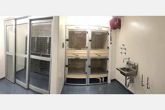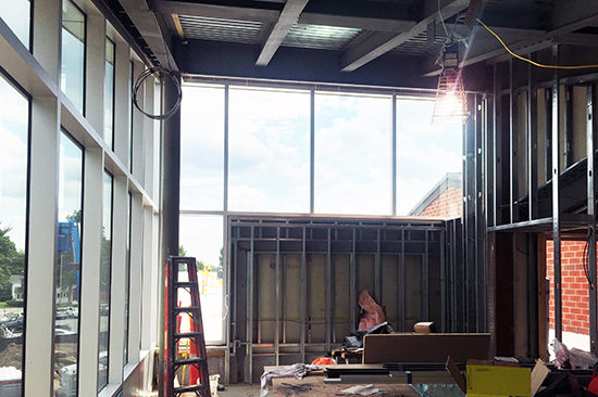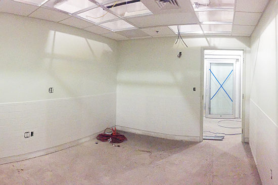 Since the YDC tour in March, significant progress has been made. The building has been successfully closed-in with curtainwall installation on the exterior and only interior elements remain. The concrete slab has been poured including radiant tubing for extra animal comfort in the waiting room. Zinc-tin coated copper paneling was installed on the roof and facades are in its weathering process. The interior walls of the waiting room have been closed in, bringing the final appearance and size of the room to light. The isolation suite, a clinical suite for infectious animals, is nearly complete preparing to open in late June. Exam rooms, the space most desperately needed in this facility, are receiving their finishes in preparation for flooring and casework installation.